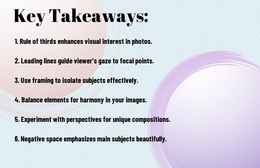 There’s a world of beauty just waiting to be captured, and mastering composition is the key to transforming your photographs from ordinary to exceptional. By understanding a few fundamental techniques, you can elevate your shots and express your creative vision more effectively. In this guide, you’ll explore crucial composition principles that will enhance your photography skills, making it easier for you to create stunning images that truly resonate with your audience. Get ready to take your camera in hand and discover how simple adjustments can lead to breathtaking results!