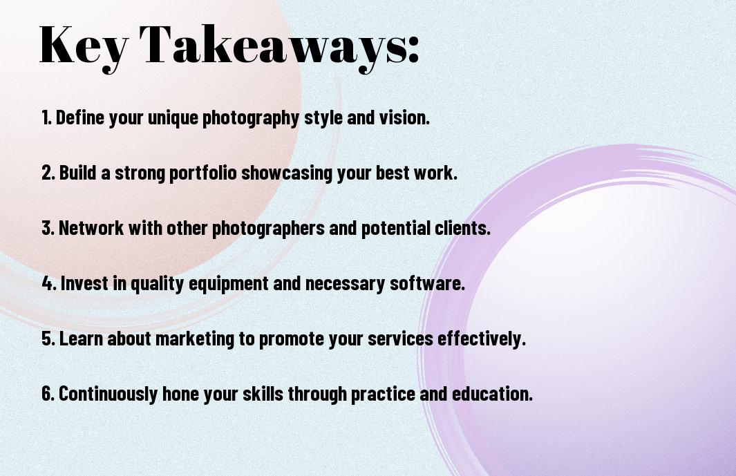 It’s time to turn your passion for photography into a thriving business. By harnessing your creativity and technical skills, you can carve out a unique niche in the competitive photography market. This journey involves understanding the fundamentals of photography, developing a strong portfolio, and mastering the business aspects that turn a creative hobby into a sustainable livelihood. This guide will walk you through the important steps to launch your photography business, helping you transform your artistic vision into a successful venture.