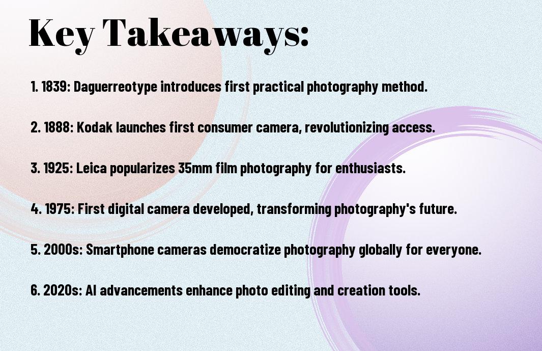 Timeline events in photography showcase the evolution of a medium that has transformed the way you perceive the world around you. From the first camera obscura to the instant gratification of digital photography, your experience as a photographer or an enthusiast has been shaped by significant milestones. In this post, you will explore key developments and breakthroughs that have defined photography, helping you appreciate how far this art form has come and how it continues to evolve in the modern age.