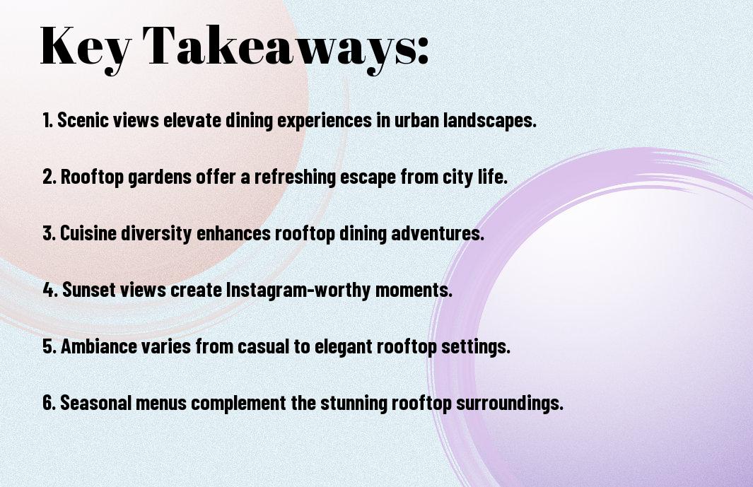 There’s nothing quite like enjoying a meal while soaking in breathtaking views of the city skyline. In this blog post, you’ll discover the most picturesque rooftop dining destinations in the concrete jungle, where you can indulge in delectable cuisine amidst stunning vistas. Whether you’re looking for a romantic evening or a chic spot to gather with friends, these elevated eateries provide the perfect backdrop for your next dining experience. Get ready to elevate your meals to new heights as you explore these must-visit locations.